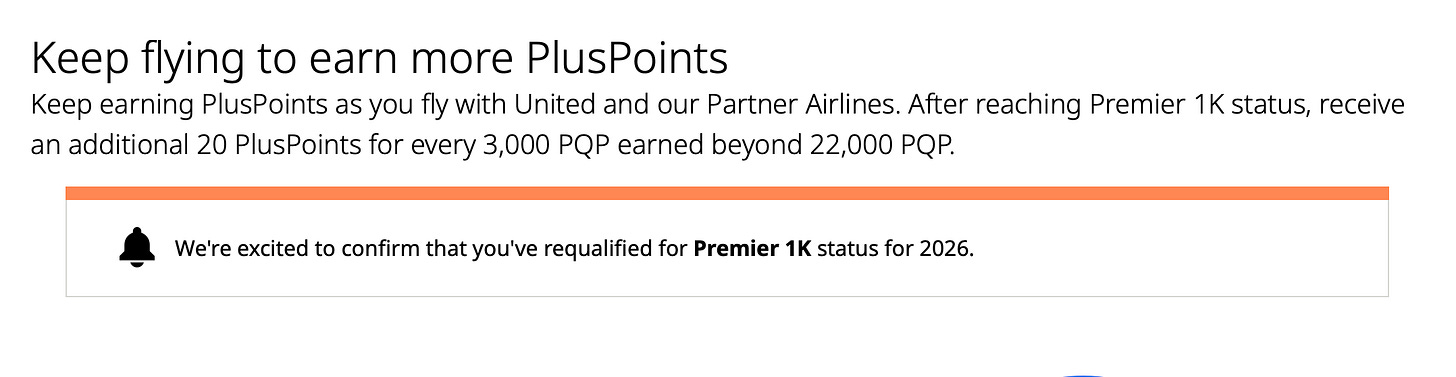 Yet, deep down, I was a little sad inside. That’s because a few weeks ago, I had re-qualified for 1K status on United. That’s no easy feat, and it gets harder and harder every year. But thanks to some unexpected business overseas, I was able to meet the threshold of dollars spent and segments flown.